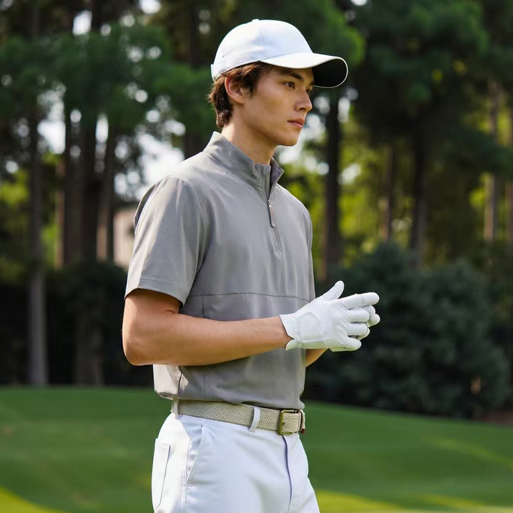 This light gray half-zip stand-collar short-sleeve top is specially designed for golf and light outdoor sports. Made from high-elasticity, quick-drying functional fabric, it boasts a delicate matte finish. The half-zip stand-collar design allows flexible adjustment of the collar opening, which not only provides wind and sun protection but also enables rapid heat dissipation. The spliced cut of the garment fits the body snugly, reducing restrictions during movement. The hidden side pockets balance practicality and aesthetics perfectly. With an overall sleek and minimalist style, it is suitable for multiple scenarios including sports, leisure, and light commuting.