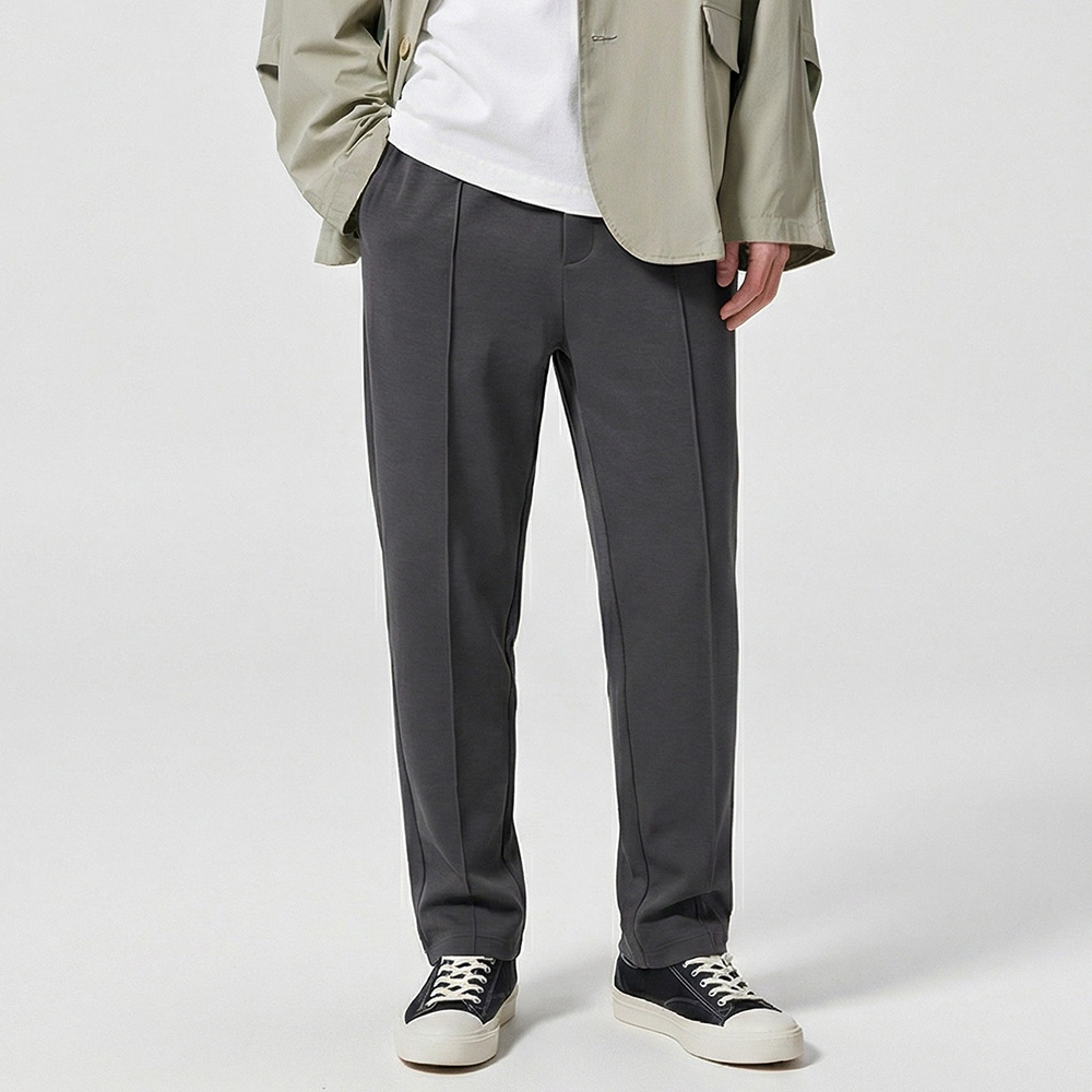 Featuring a classic relaxed tapered fit, the pants provide ample room for movement around the thighs, with slightly cinched cuffs to avoid bagginess, creating a sharp and neat silhouette visually.