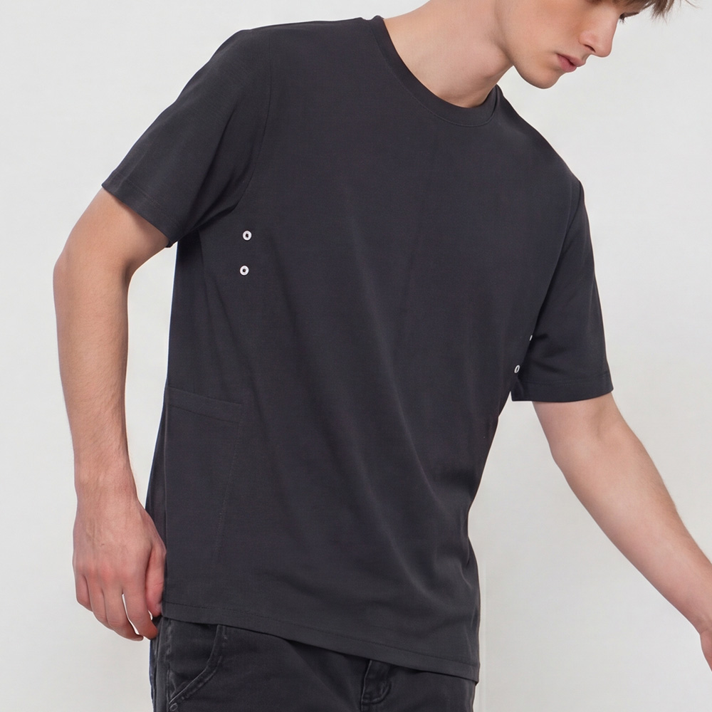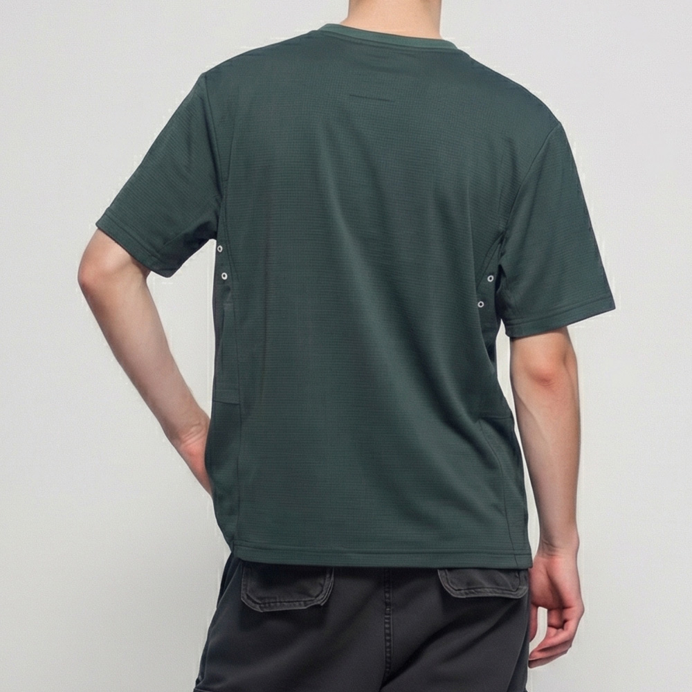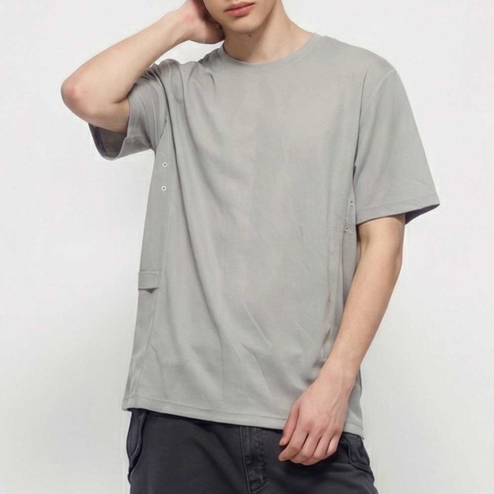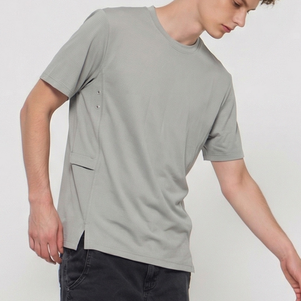 Crafted from a waffle-textured fabric, it features a delicate concave-convex grid surface that delivers both visual layers and a pleasant tactile experience.The slightly relaxed fit ensures maximum comfort, while the hidden side button design allows flexible adjustment of the hem slit—enhancing both wearability and stylish detailing.With a sleek, understated yet premium finish, it seamlessly complements diverse styling scenarios from daily casual looks to streetwear trends.