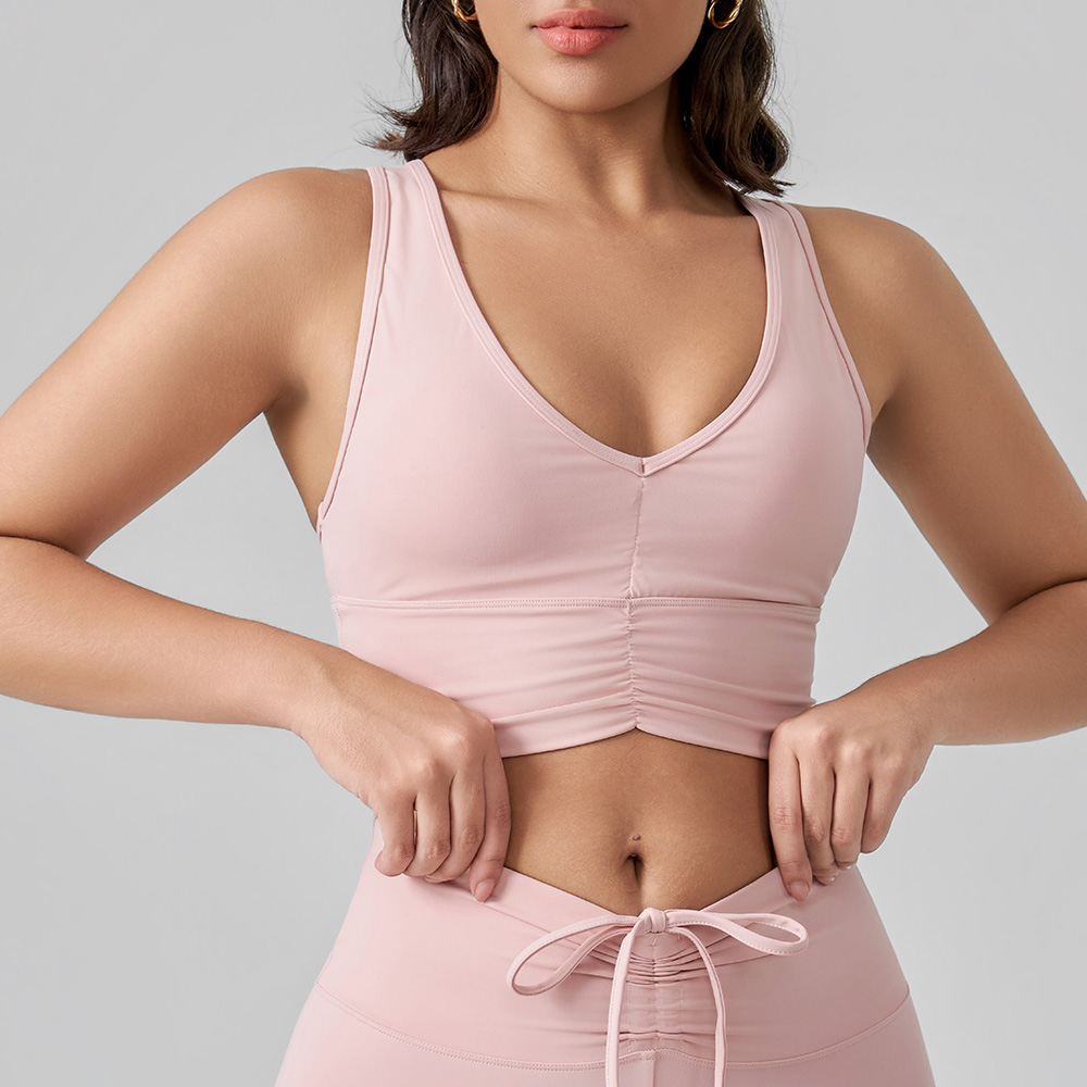 The deep V-neckline accentuates your silhouette, while the ruched front detail adds a trendy touch that stands out from basic activewear. Crafted from four-way stretch, moisture-wicking fabric, it moves with you through yoga flows, gym sessions and casual errands.