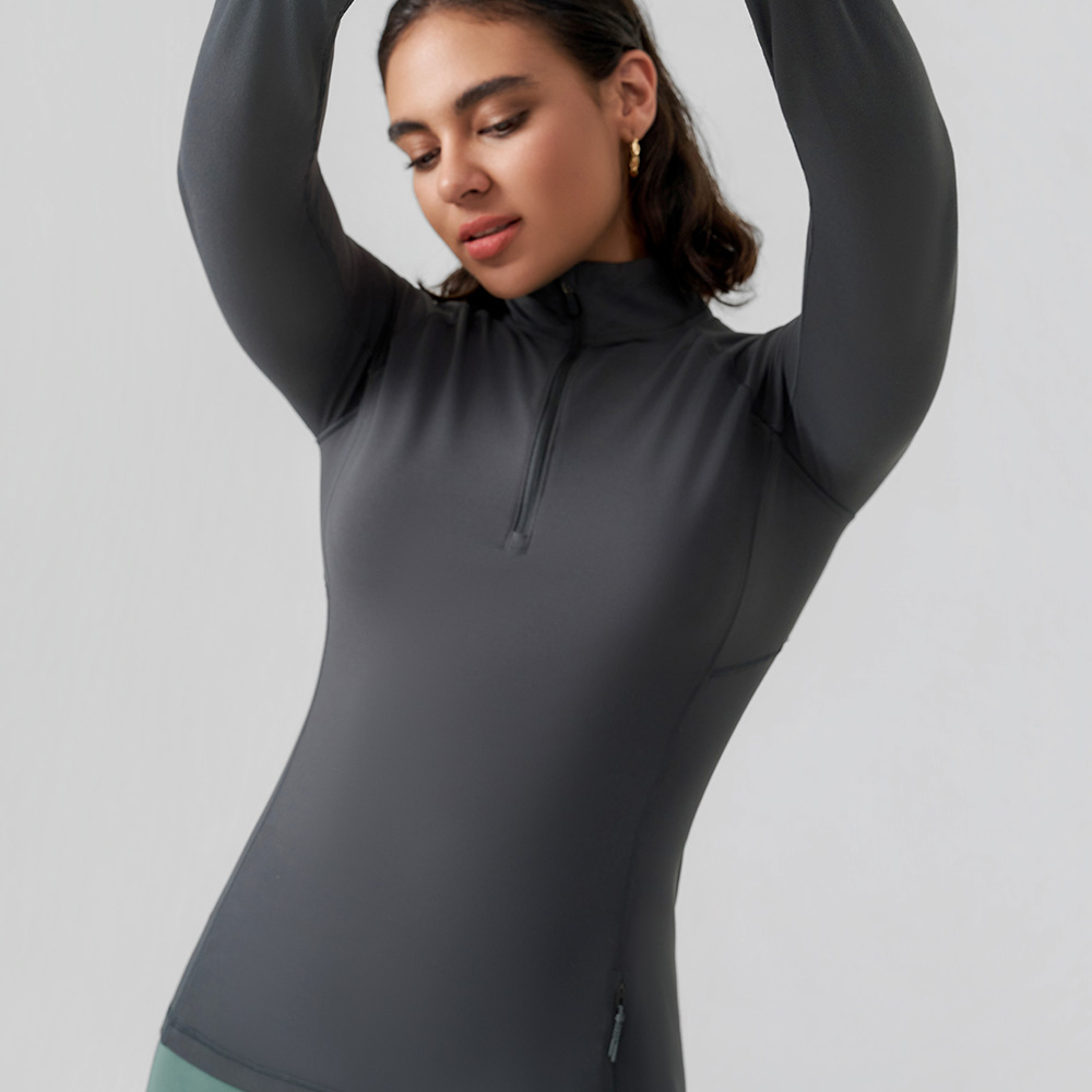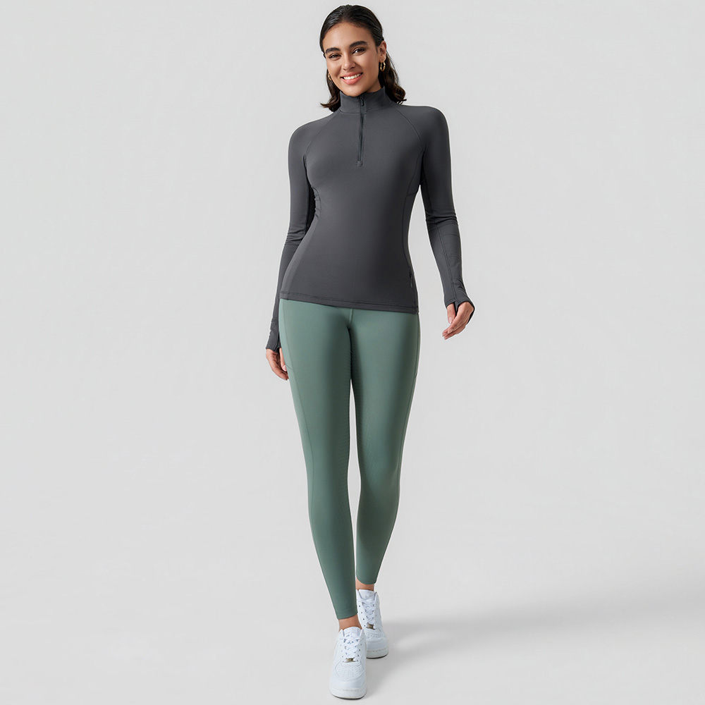 Crafted as the ultimate athletic base layer, this half-zip long-sleeve top fuses second-skin comfort with high-performance functionality. Its sleek, compressive fabric sculpts the silhouette while allowing unimpeded movement, and the quarter-zip neckline offers adjustable ventilation for varying activity levels. Designed for the dedicated active woman, it becomes a versatile staple for workouts, layering and everyday wear alike.