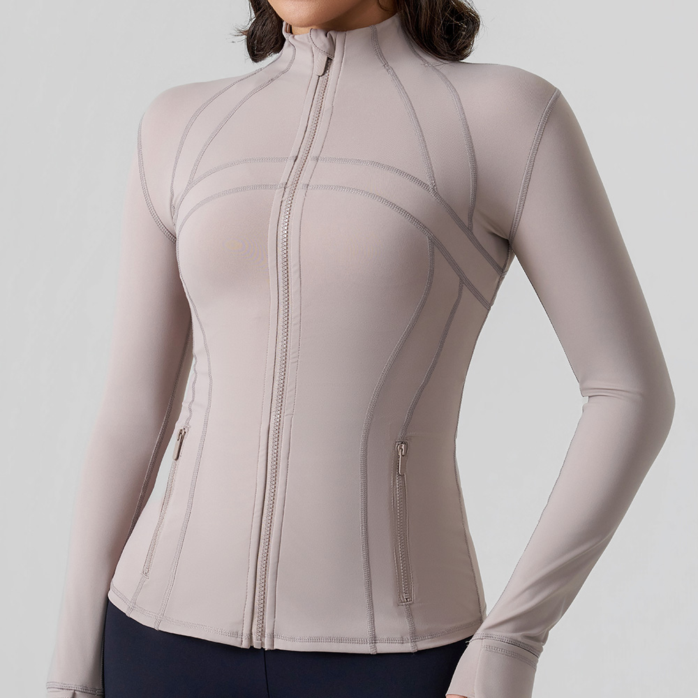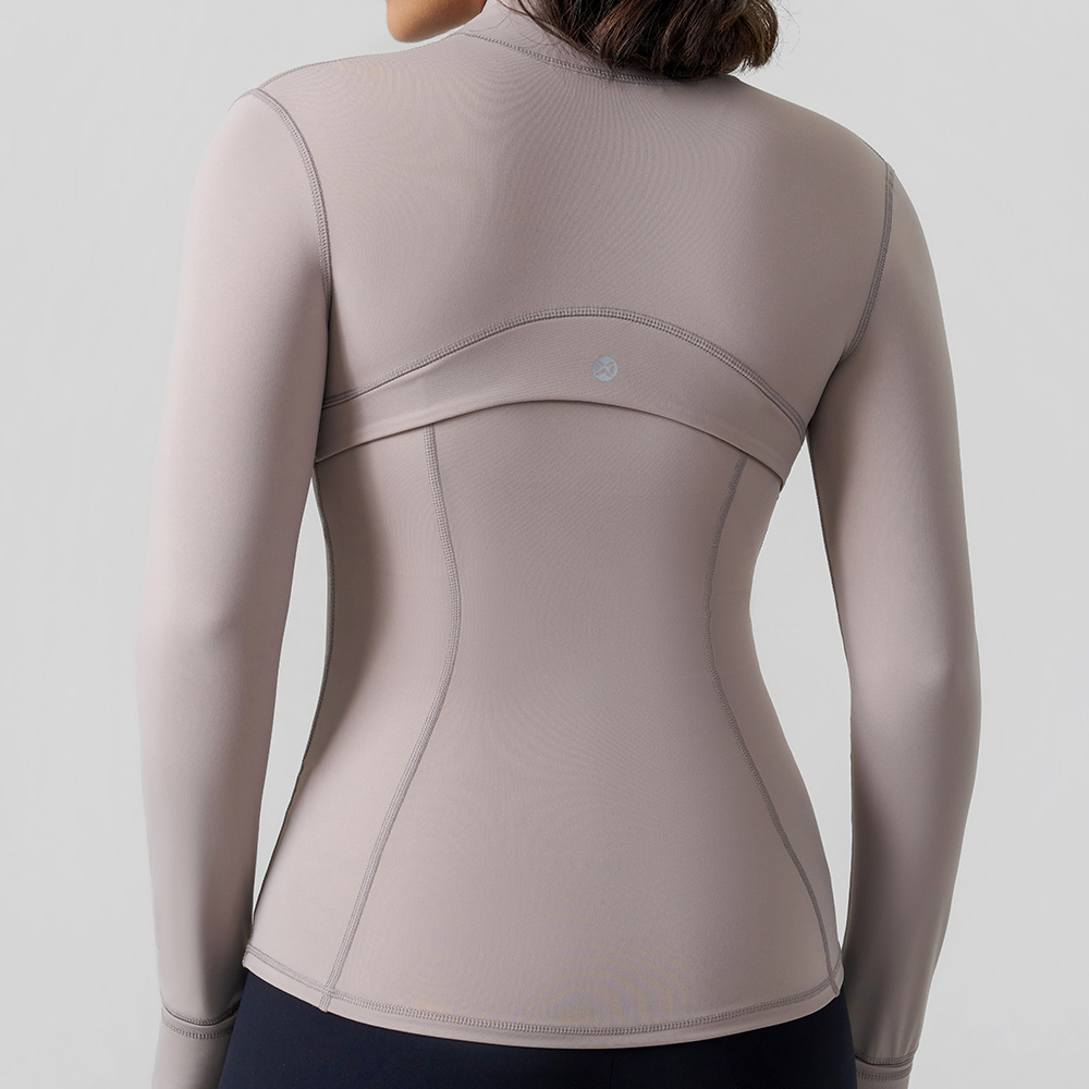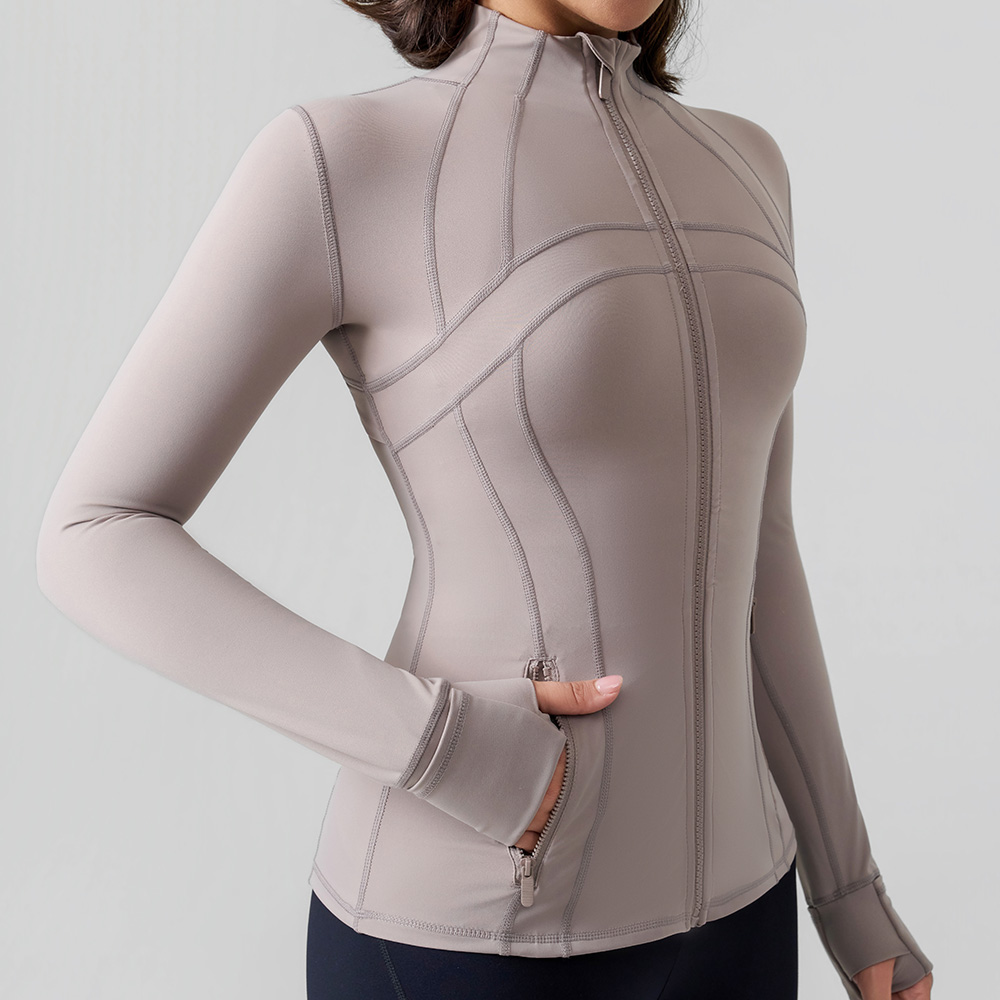 Infuse your activewear collection with soft sophistication via this full-zip performance jacket, where muted tonal design meets high-function comfort. Its buttery-soft compressive fabric hugs the body with supportive stretch, while the seamless panel detailing elevates the silhouette with subtle texture. Tailored for the modern active woman, it transitions effortlessly from gym sessions to casual outings with refined ease.