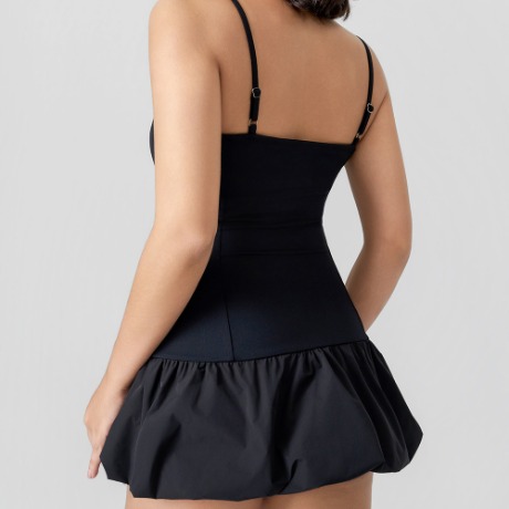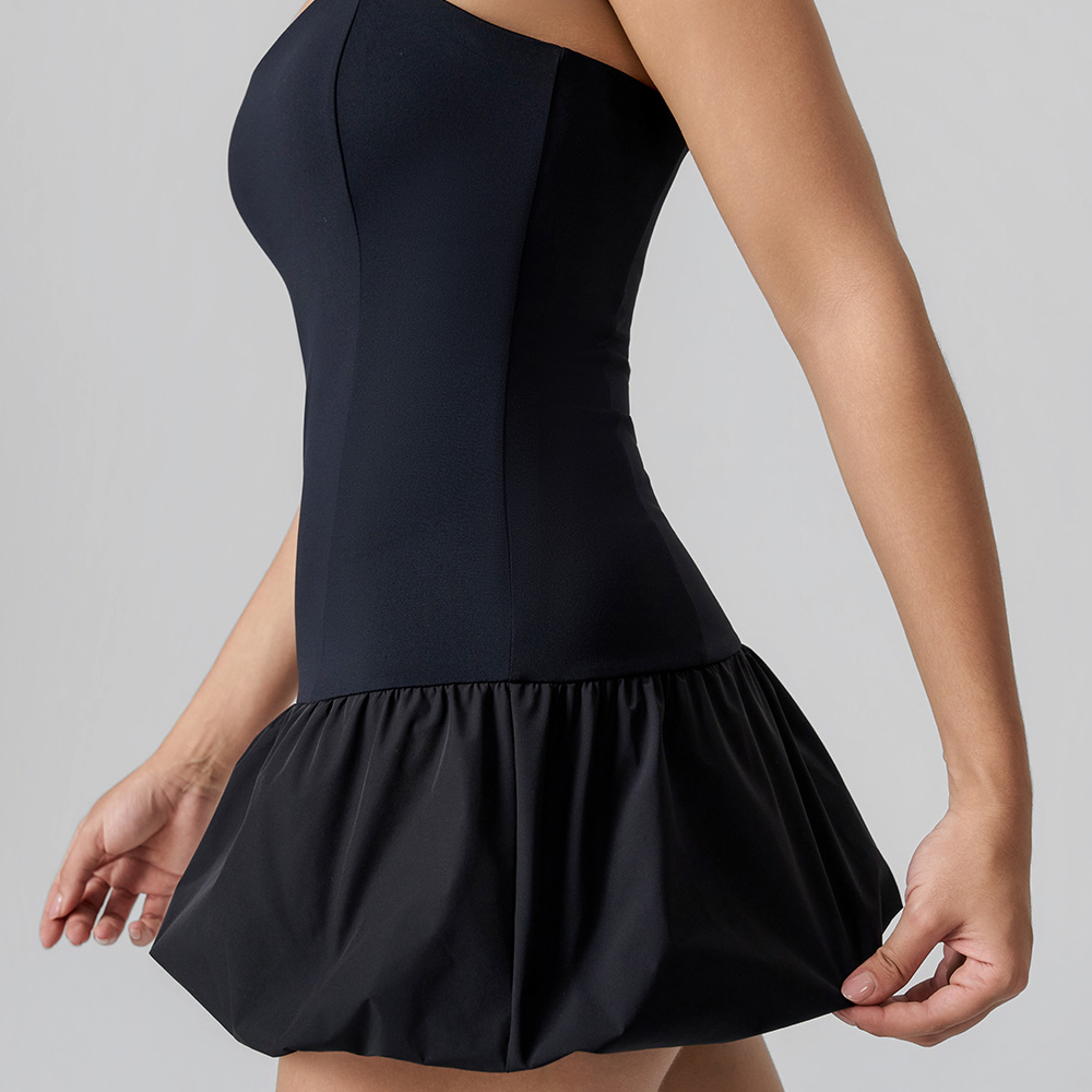 Cami strap + skirt overlay design Combines sleek style with practical coverage for on-court movement |