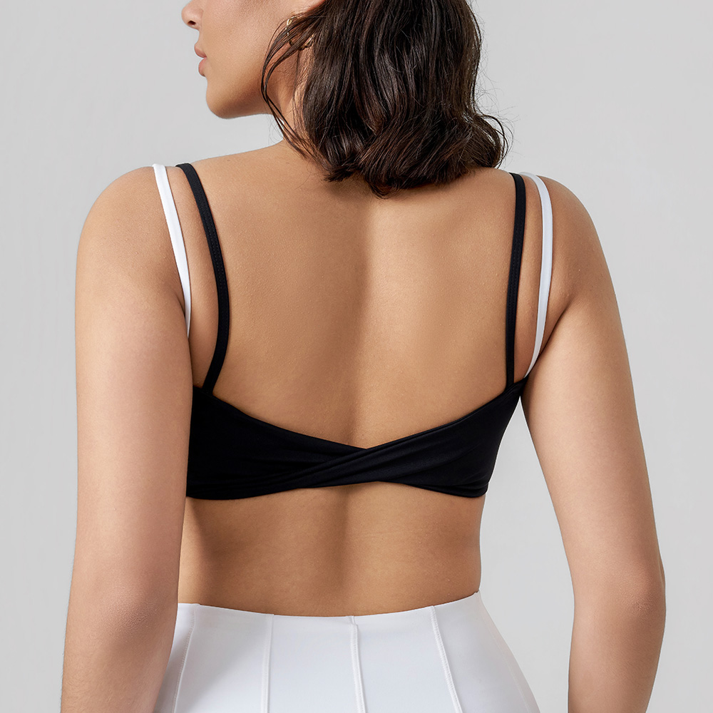 The open-back strap detail highlights your silhouette while the dual-layer construction delivers reliable bust support, making it perfect for yoga, gym sessions and casual wear. Crafted from breathable, four-way stretch fabric, it keeps you comfortable and secure through every move and pose.